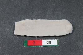 | Description / विवरण | Fragment of a blade with positive bulb of purcussion and two dorsal ridges having smooth surface. |