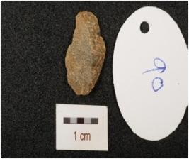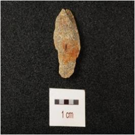 | Description / विवरण | Fragment of a charred bone point with polished surface, pointed one end, another end broken and square in section. |