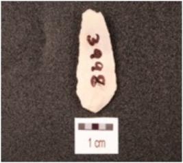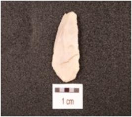 | Description / विवरण | A point made on chert blade, prepared platform, prominent bulb on ventral side, triangular in cross section and broken from pointed distal end. |