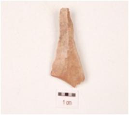 | Description / विवरण | A chert end struck utilized flake with use-wear marks along the cutting edge. |