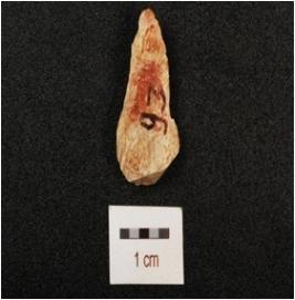 | Description / विवरण | A long bone point with polished surface, pointed one end another broken end circular in section and creamish in colour. |