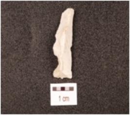 | Description / विवरण | A chert blade with triangular cross section, prepared platform, bulb absent and use-wear marks along the cutting edges. |