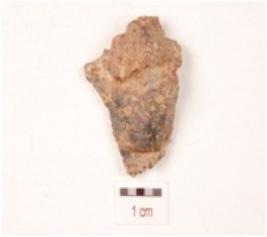 | Description / विवरण | A chert end struck flake with prominent bulb on ventral side. |