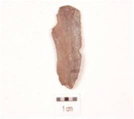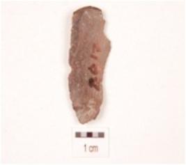 | Description / विवरण | A chert blade, triangular in cross section, prepared platform, diffused bulb on ventral side and use-wear marks along the cutting edges. |