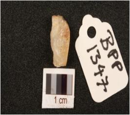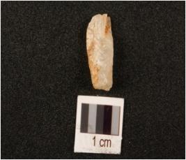 | Description / विवरण | Quartz flake with flat surface and cortex visible. |