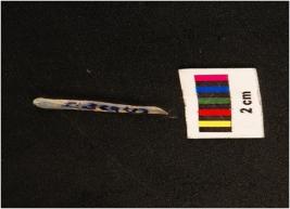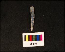 | Description / विवरण | Parallel sided microlithic blade with use wear marks on cutting edges, prominent bulb on proximal end, one end is pointed and other one is triangular section. |