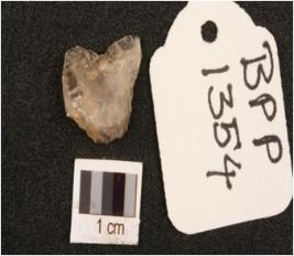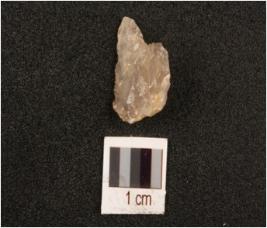 | Description / विवरण | Quartz side scraper with use wear marks along cutting edges, ridge on dorsal side and triangular in section. |