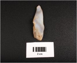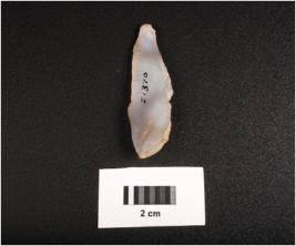 | Description / विवरण | Microlithic blade on unprepared core. Use wear mark on one cutting edge. Cortex visible on one end. Ripple marks on ventral side. |