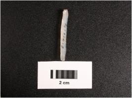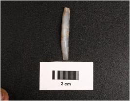 | Description / विवरण | Paralled sided chalcedony blade, mid ridge dorsal, flat ventral, duffuced bulb, distal end. |