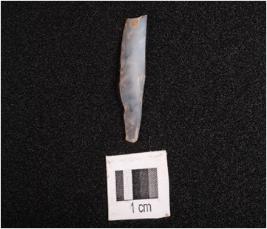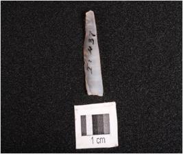 | Description / विवरण | Parallel sided microlithic blade with a mid ridge on dorsal side, difused bulb on ventral side and broken at distal end. |