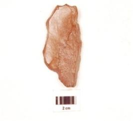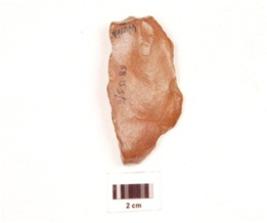 | Description / विवरण | A side scraper made on chert, end struck flake on edges prominent bulb on ventral side irregular retouch marks falke on edges scars on dorsal sie, glossy surface. |