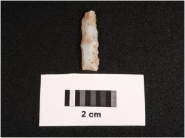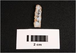 | Description / विवरण | Microlithic blade on chalcedony, prominent mid ridge on dorsal, triangular in section, use wear mark along the cutting edges. |