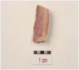 | Description / विवरण | A fragment of blade on chert with a single ridge, use wear marks on the cutting edges, triangular in section, broken from both use ends and smooth surface. |