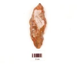 | Description / विवरण | A side scraper made chert, flake scars on dorsal side, use wear marks on edges glossy surface, diffused bulb on ventral side. |