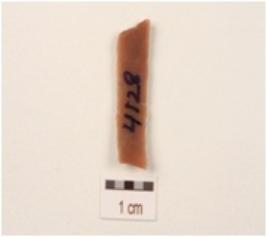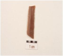 | Description / विवरण | A fragment of a blade with double ridge, use wear marks on the cutting edges, broken from both the ends, smooth surface and trapezoidal in section. |