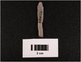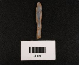 | Description / विवरण | Microlithic blade on chalcedony, flat ventral, irregular edges, mid ridge on dorsal, deffuced bulb on proximal end. |