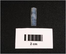 | Description / विवरण | Microlithic blade on chalcedony, prominent mid ridge on dorsal, triangular in section, use wear mark along the cutting edges, broken ventral is smooth. |