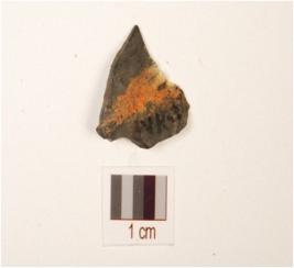 | Description / विवरण | A stone flake, irregular shape, one side is pointed and sharp edges. |