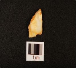 | Description / विवरण | A chalcedony flake, irregular shape and use wear mark on the cutting edges. |