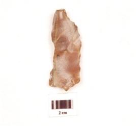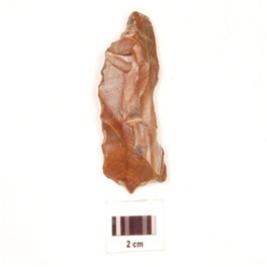 | Description / विवरण | A side scraper made on chert, end struck flake, use wear marks on edges flake scars on dorsal side, diffused bulb on ventral side. |