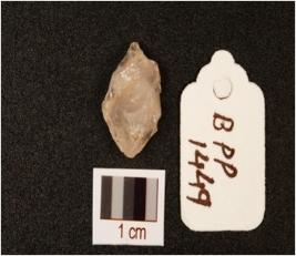 | Description / विवरण | Quartz flake with irregular shape and ridge on dorsal side. |