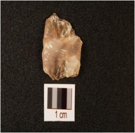 | Description / विवरण | A quartz flake, sharp edges, irregular shape and use wear mark on the cutting edges. |