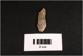 | Description / विवरण | Parallel sided microlith blade with use wear marks on cutting edges and prominent mid ridge on dorsal, prominent bulb on proximal end. |