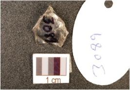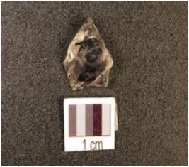 | Description / विवरण | A crystal end struck flake, prepared platform and bulb absent. |