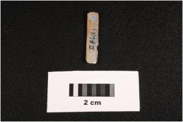 | Description / विवरण | Parallel sided microlith blade with two ridges on dorsal side, use wear marks on cutting edges, diffused bulb on proximal end, smooth surface trapezoid section. |