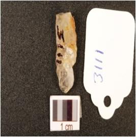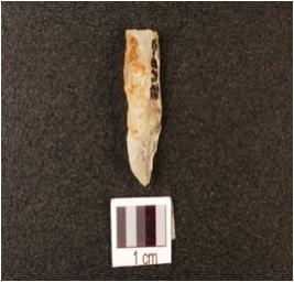 | Description / विवरण | A quartz end struck flake with prepared platform. |