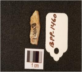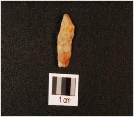 | Description / विवरण | A quartz end scraper with use wear mark on cutting edge. |