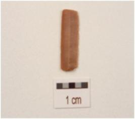 | Description / विवरण | A blade made on chert with single ridge, use-wear marks on cutting edge, broken along both the ends and triangular in section. |