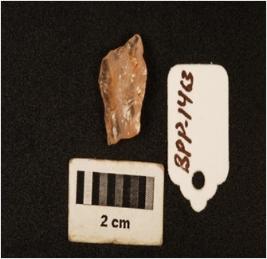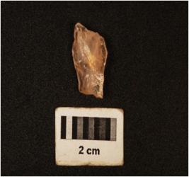 | Description / विवरण | A quartz flake with use wear mark on the cutting edges and weathered condition. |