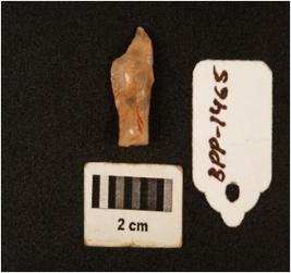 | Description / विवरण | a quartz flake, long square shape slightly pointed at one end and use wear mark on the cutting edges. |
