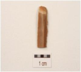 | Description / विवरण | A blade made on chert with single ridge, use-wear marks on the cutting edges and triangular in section. |