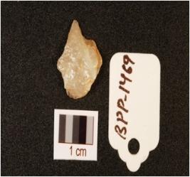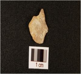 | Description / विवरण | A quartz flake, flake scars on surface. |