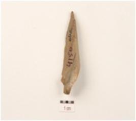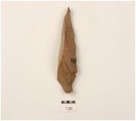 | Description / विवरण | A blade made on chert with single ridge, diffused bulb on the ventral side, pointed at the distal end, use-wear marks on the cutting edges and triangular in section. |