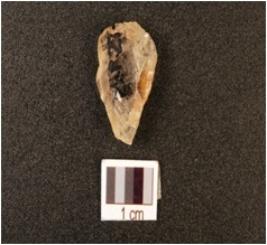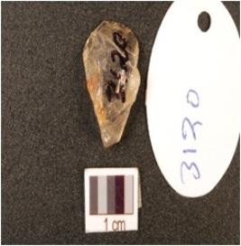| Description / विवरण | A crystal end scraper made on end struck flake, prepared platform, diffused bulb on ventral side and use-wear marks along the cutting edge. |