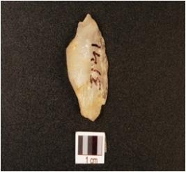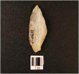 | Description / विवरण | A quartz end struck flake with prepared platform and use-wear marks along the edge. |