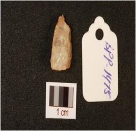 | Description / विवरण | A quartz flake, triangular shape and sharp edges on the both side. |