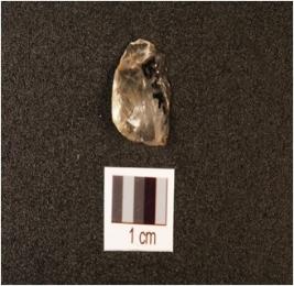 | Description / विवरण | A quartz flake with use ware mark along one cutting edges. |