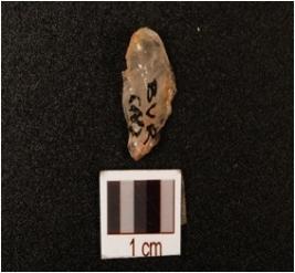 | Description / विवरण | A quartz crescent made on end struck flake, use-wear marks along the cutting edge. |