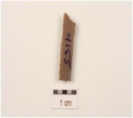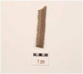 | Description / विवरण | A blade made on chert with single ridge, use wear marks on the edges, broken from both ends and triangular in section. |
