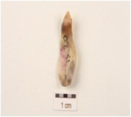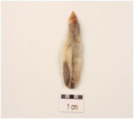 | Description / विवरण | A blade made on chalcedony with a single ridge, use-wear marks on the cutting edges, pointed the distal end and triangular in section. |