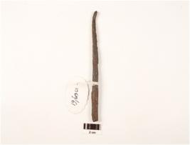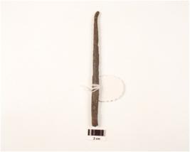 | Description / विवरण | Fragment of iron nail with broken head, pointed working end, circular in section, chemically treated object. |