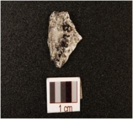 | Description / विवरण | A quartz end struck flake with use-wear marks along the edge. |