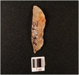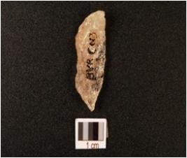 | Description / विवरण | A quartz blade with a ridge on dorsal side, use-wear marks along the cutting edge and proximal end broken. |