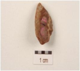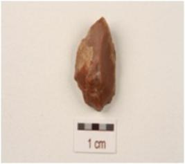 | Description / विवरण | An Utilized flake made on chert with a single ridge, use-wear marks on the cutting edge, tapering at the distal end and triangular in section. |