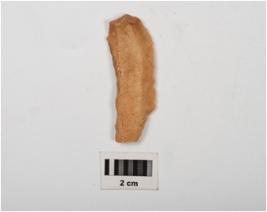 | Description / विवरण | Chert blade, two ridge on dorsal, use wear mark along with cutting edges, defused bulb on proximal end. |