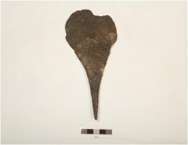 | Description / विवरण | A khurpi made on iron, pointed one end, flat broad other end, slightly broken blade, rusted surface, rectangular in section. |